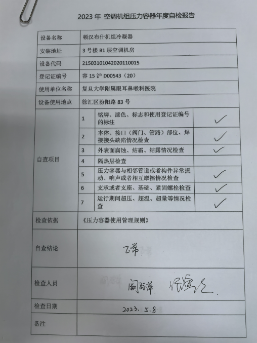 2.在用压力容器应每年至少进行1次年度检查,可以由使用单位安全管理人员组织经过专业培训的作业人员进行,也可以委托有资质的特种设备检验机构进行,年度检查报告应当有人员签字、单位盖章。